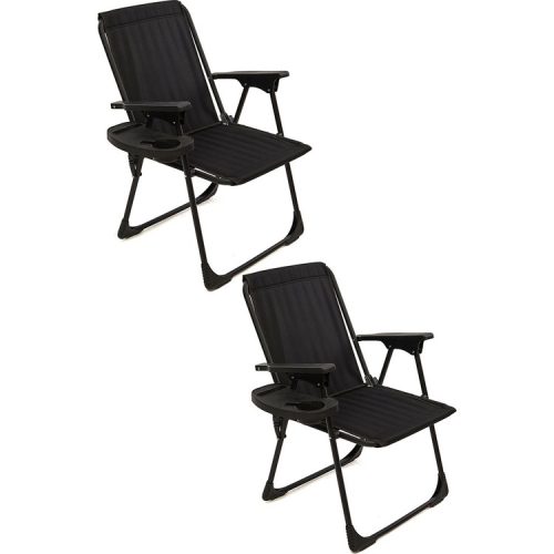 Moniev 2 Adet Kamp Sandalyesi Katlanır Piknik Sandalye Oval Bardaklıklı Siyah