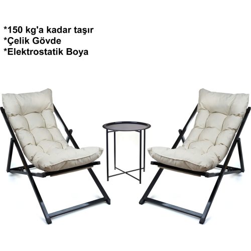 Hastunç Hastunç Minderli – Zora Şezlong Seti Bahçe&balkon&teras&plaj Katlanır Ikili Set – 2 Şezlong 1 Sehpa
