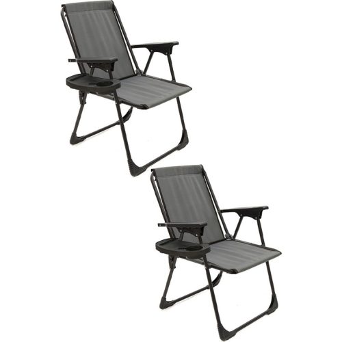 Moniev 2 Adet Kamp Sandalyesi Katlanır Piknik Sandalye Oval Bardaklıklı Gri