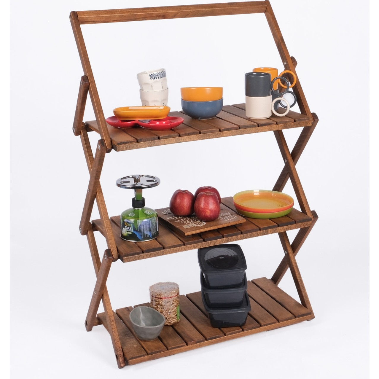 · 3 Katlı Geniş Depolama Alanı: Kamp mutfağı eşyalarınız, kitaplarınız veya dekoratif objeleriniz için ideal kullanım alanı sunar.