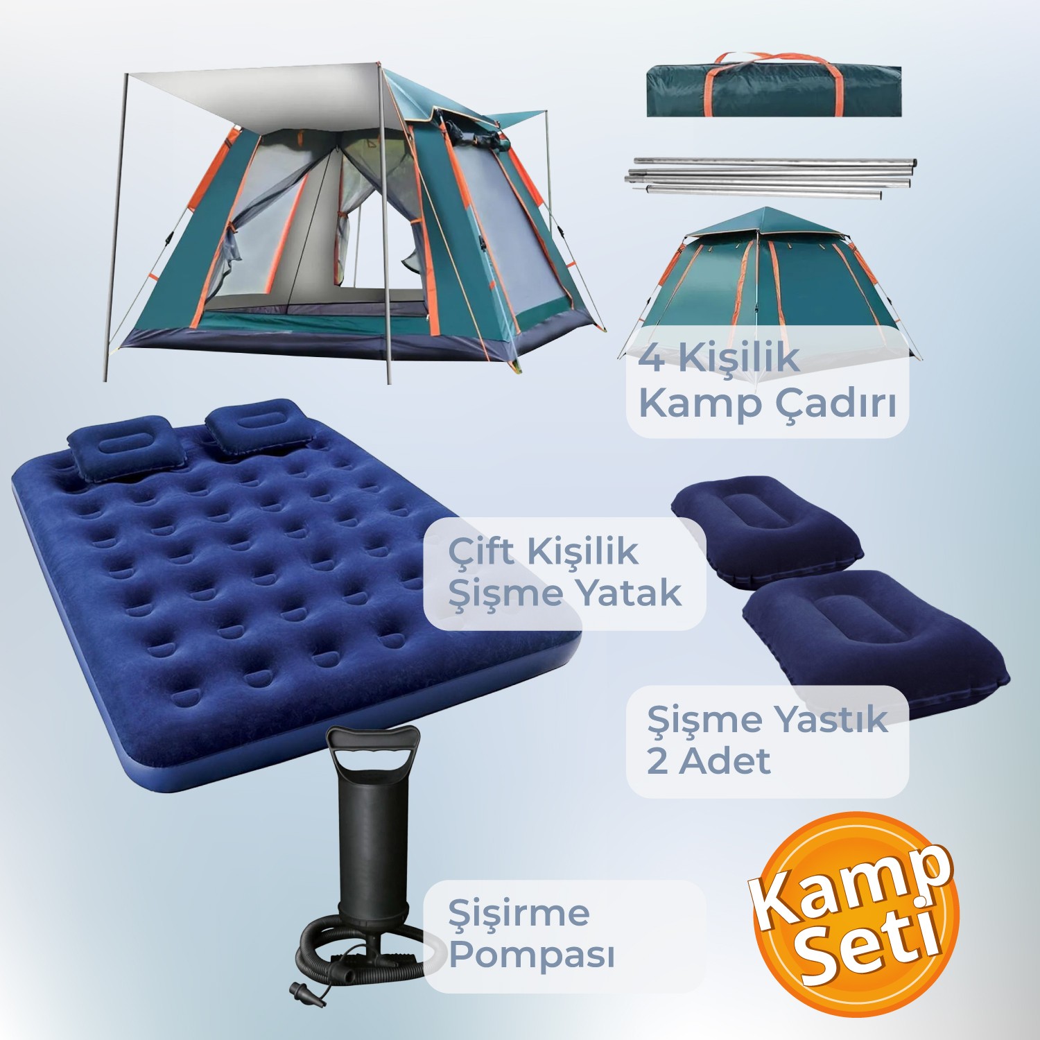 Kamp Seti 4 Kişilik Kamp Çadırı Çift Kişilik Yatak Yastıkpompa