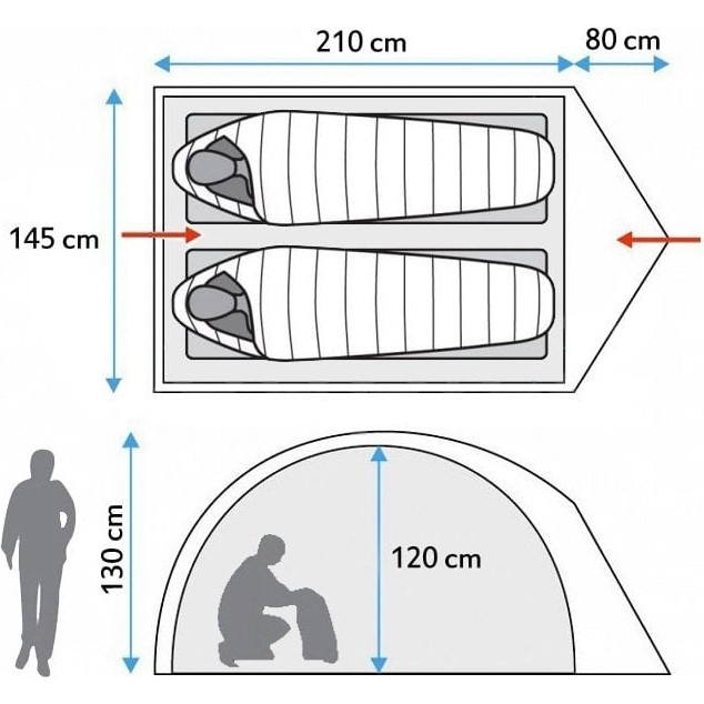 - Dış tentesi 100 polyester Diamond grafik kumaşı, Drytech kaplaması sayesinde PU/ 3000 mm su sütunu dayanıklılığa sahiptir.