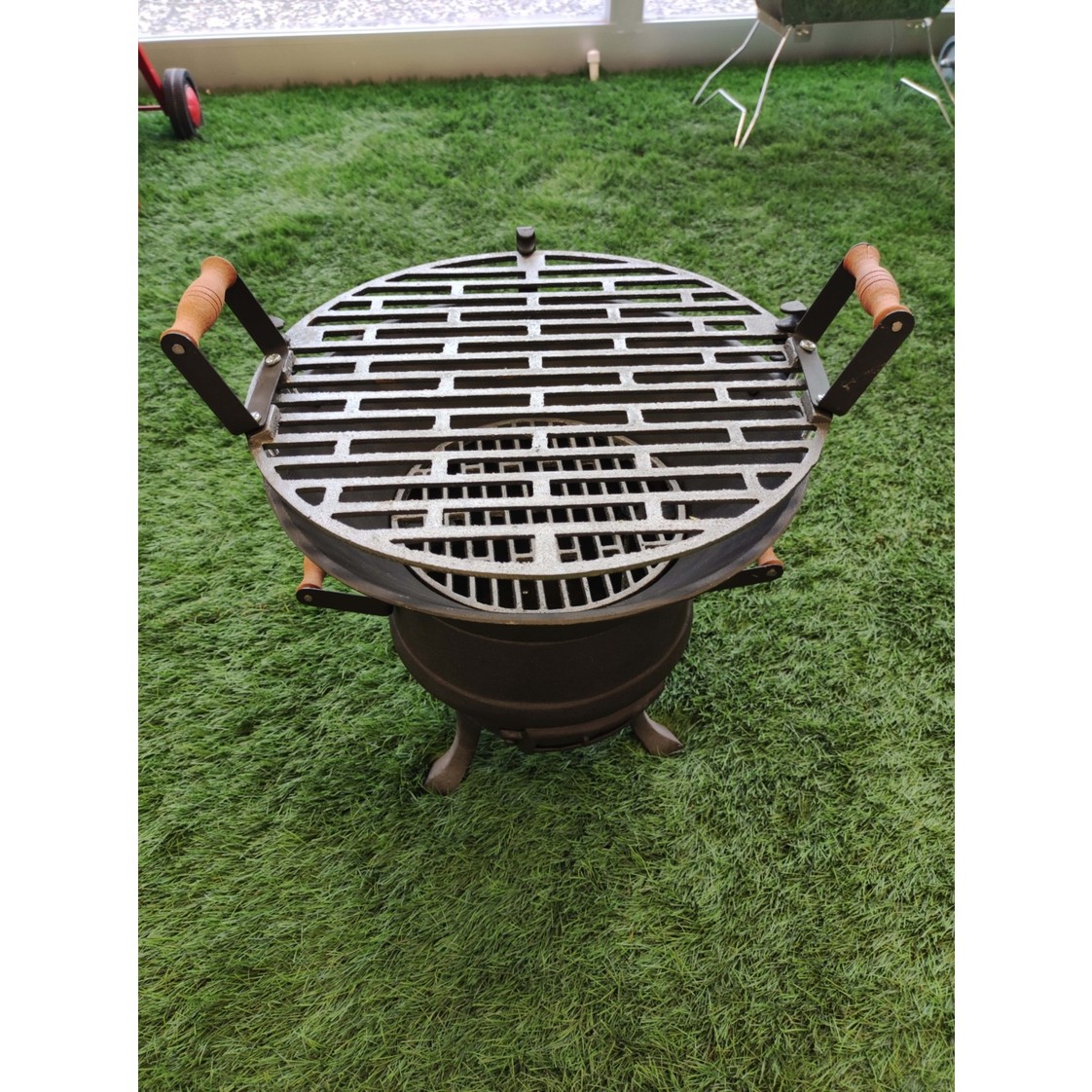 H2 Külçe pik dökümden üretilen ürünümüz daire şeklinde dekoratif ve şık bir görünüme sahiptir. Altında bulunan havalandırma sistemi sayesinde ateşin kontrolünü elinize alabilir çift katmanlı ızgara yapısıysa etkili ve güvenli bir pişirme sağlayabilirsiniz. 3 farklı yükseklik ayarına sahip olan mangalımız yiyeceklerinizi en iyi şekilde pişirmenize yardımcı olmaktadır. Gerek mangal, gerek ise ızgarada bulunan ahşap kulplar hem dekoratif bir görünüm katmakta hem de kullanımı güvenli ve kolay bir hale getirmektedir. Izgaralar da pik dökümden imal edilmiştir. Paslanmaz, yıpranmaz ve dayanıklıdır.