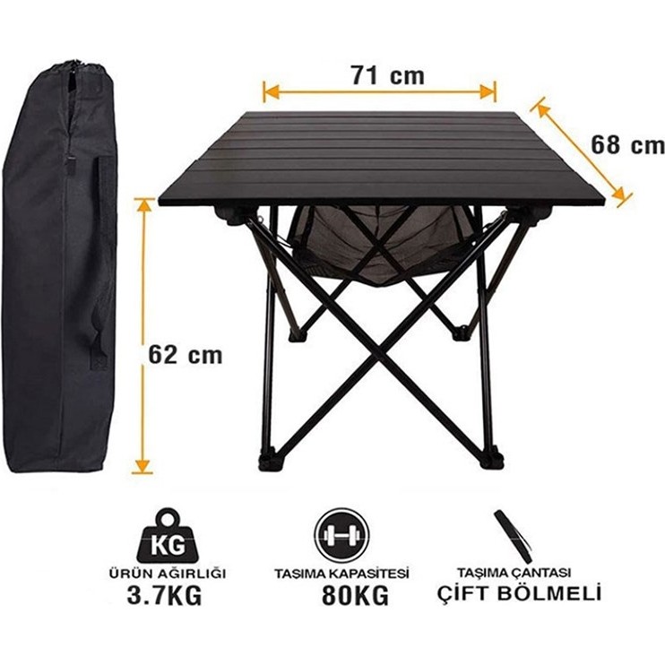Funky Chaırs Black Katlanabilir Kamp Masası Büyük (71 x 68 x 62CM)