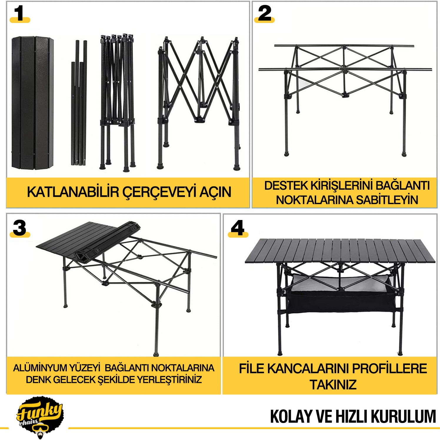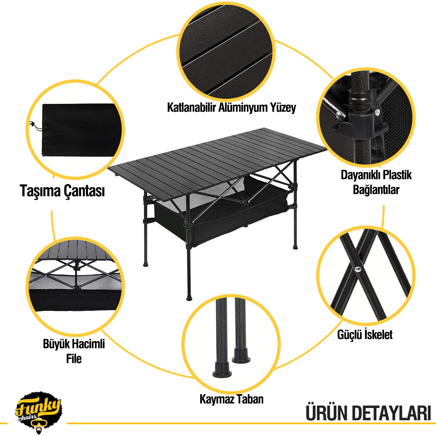 Funky Chaırs Family Large Katlanabilir Alüminyum Kamp Masası (95X55X68CM) – Siyah