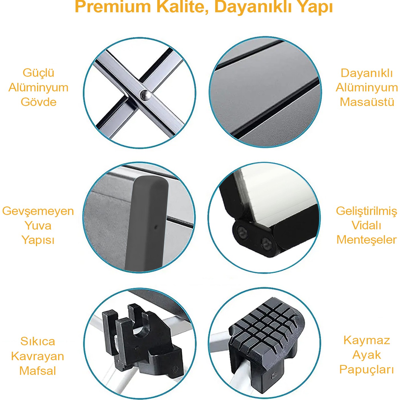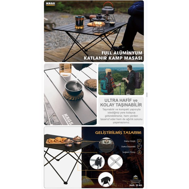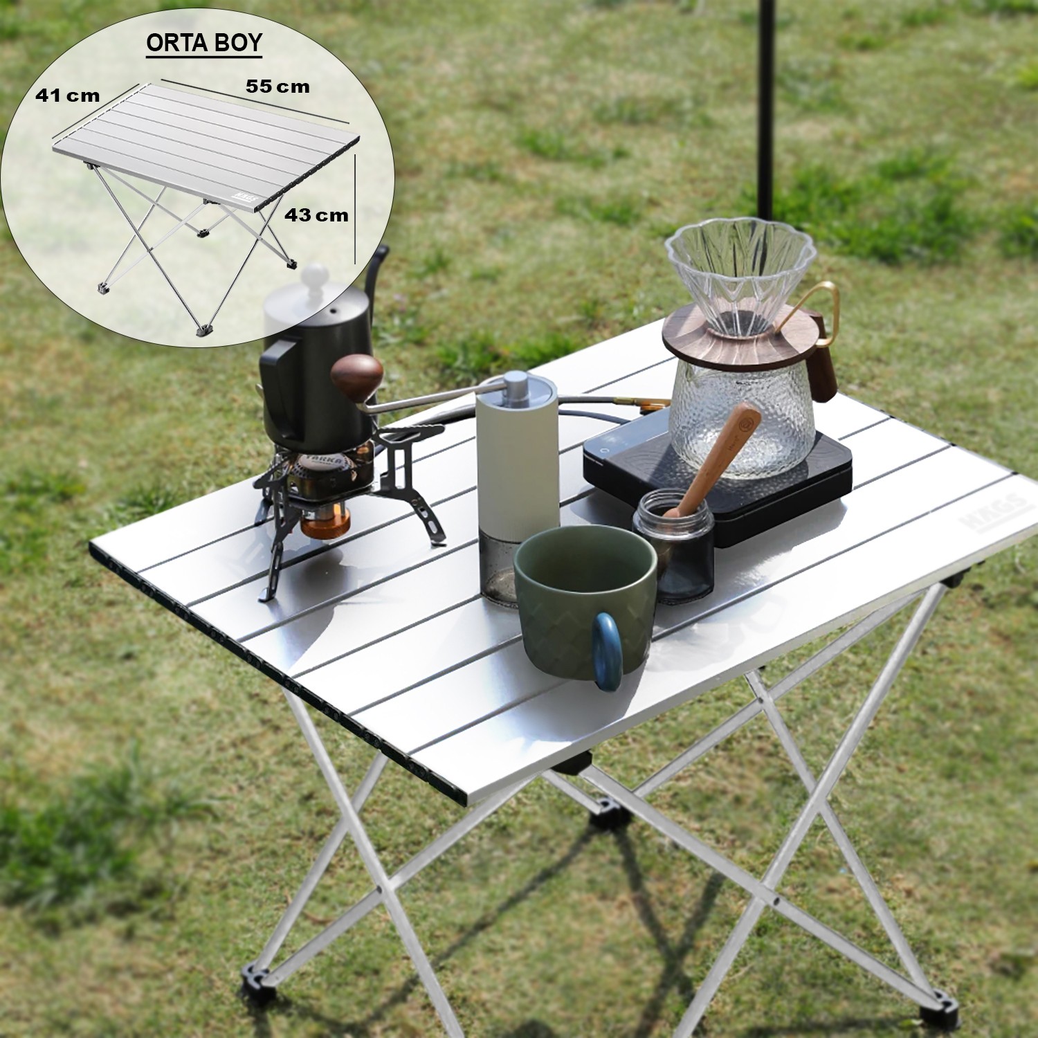Haegs Full Alüminyum Katlanır Kamp Sehpası, Piknik, Plaj, Ourdoor Hafif Kamp Masası Orta Boy – Gümüş
