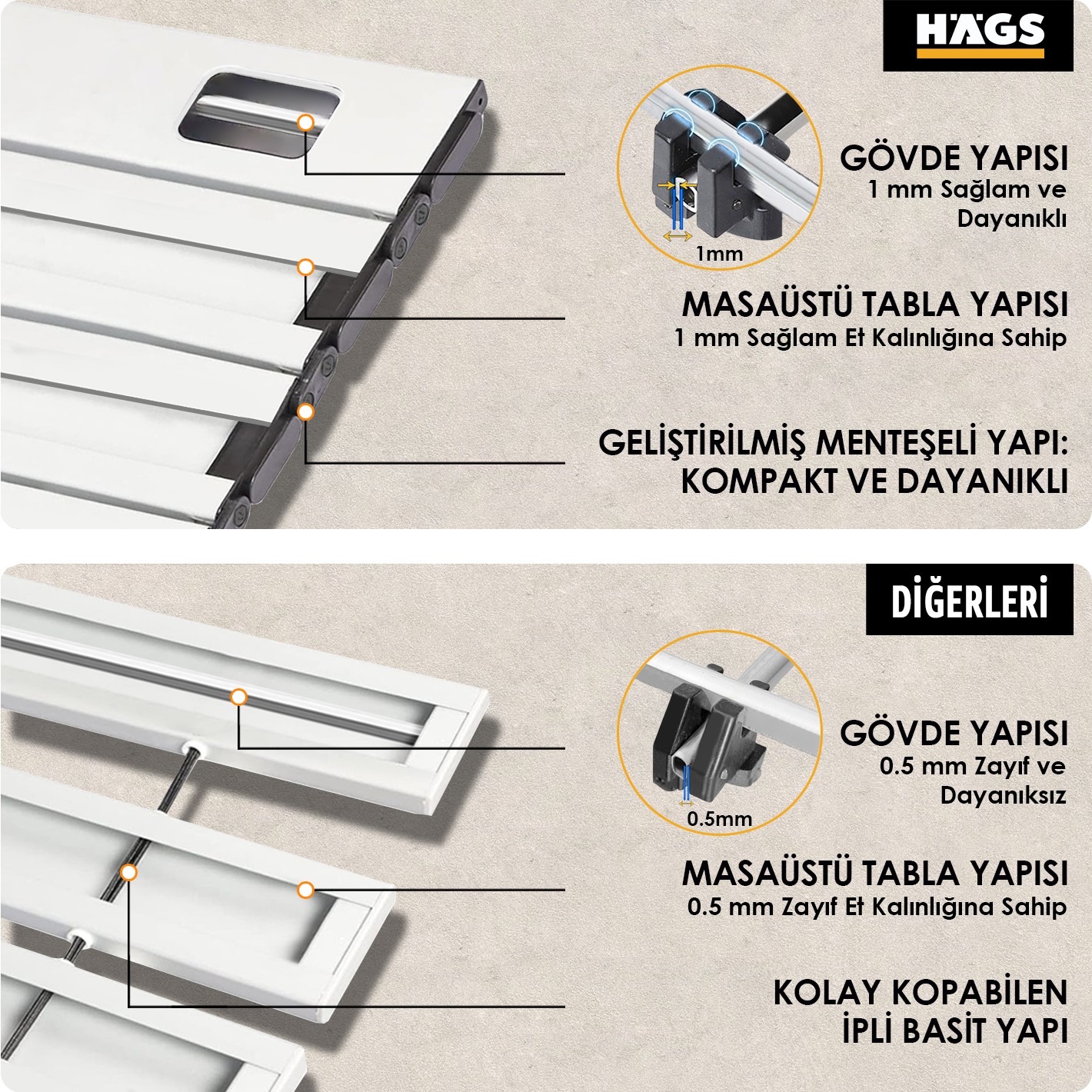 ✅ GELİŞTİRİLMİŞ TASARIM: Yeni geliştirilmiş yüksek kaliteli katlanır masa tablalarımız, esnek ipli kordon bağlantılı diğer katlanır masa tablalarına kıyasla benzersiz bir vidalı menteşeli bağlantıya sahiptir, daha dayanıklı, daha sağlamdır