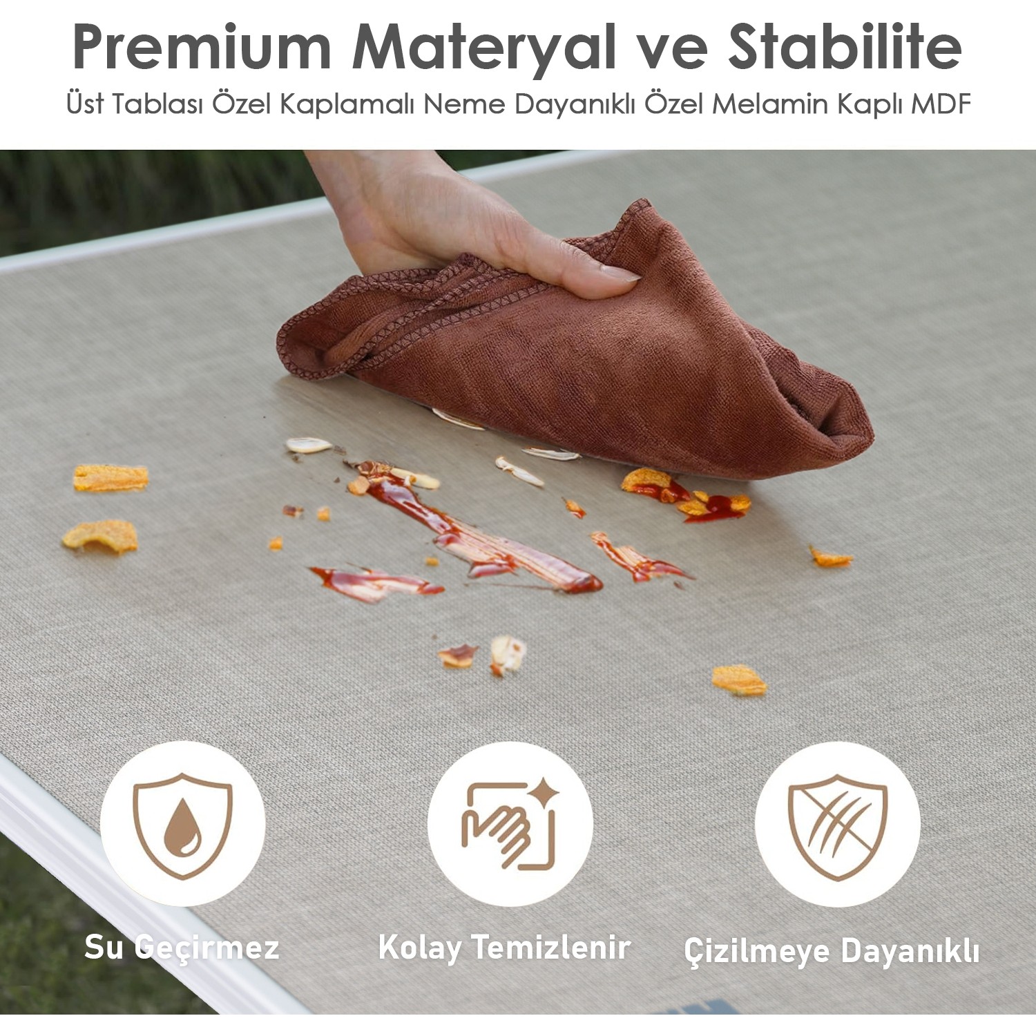 ✅&Nbsp; Kalite Ve Stabilite: Haegs Katlanabilir Kamp Masası, Mukavemetli Alaşımlı Alüminyum Çerçeve, Alüminyum Gövde Yapısı, Alüminyum Ayakları Ve Üst Tablası Özel Kaplamalı Medium Density Fiberboard (Neme Özel Melamin Kaplı Mdf) Levhadan Yapılmıştır. Güçlü, , Paslanmaz, Deforme Olmaz Ve Temizlenmesi Kolaydır. Masa Tablasının Her Köşesinde, Ayaklarla Birlikte Stabiliteyi Ve Maksimum Yük Kapasitesini (30 Kg’a Kadar) Önemli Ölçüde Artıran Bir Payanda Bulunmaktadır.