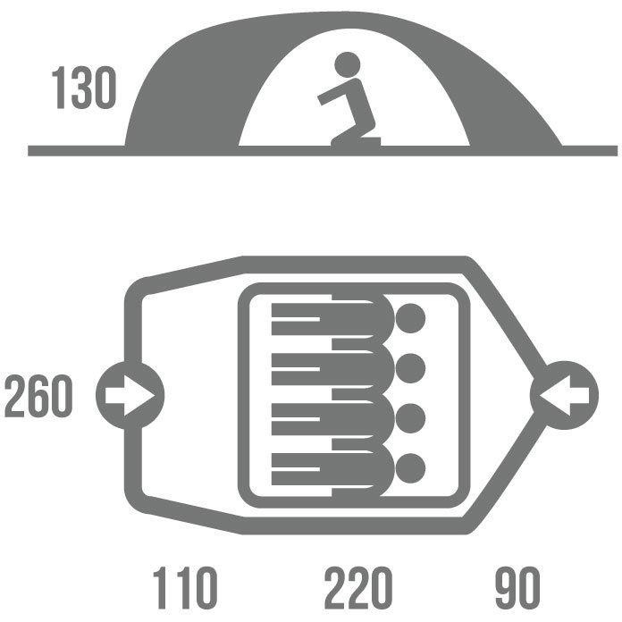 Baron 4 çadırı çift yüzlü ve 8.5mm çubukları vardır. Çadırın dış kısmı 210T Polyester ile mekanik hasarlara karşı yırtılmayı engeller. PU kaplaması 5000 mm/cm2 dir. Çadırın iç kısmı Nylon 190T ile nefes alabilir biçimde ve daha iyi hava sirkülasyonu için cibinliği vardır. Zemin 190T Polyester kaplama ile yapıldı ve su direnci 8000 mm /cm2