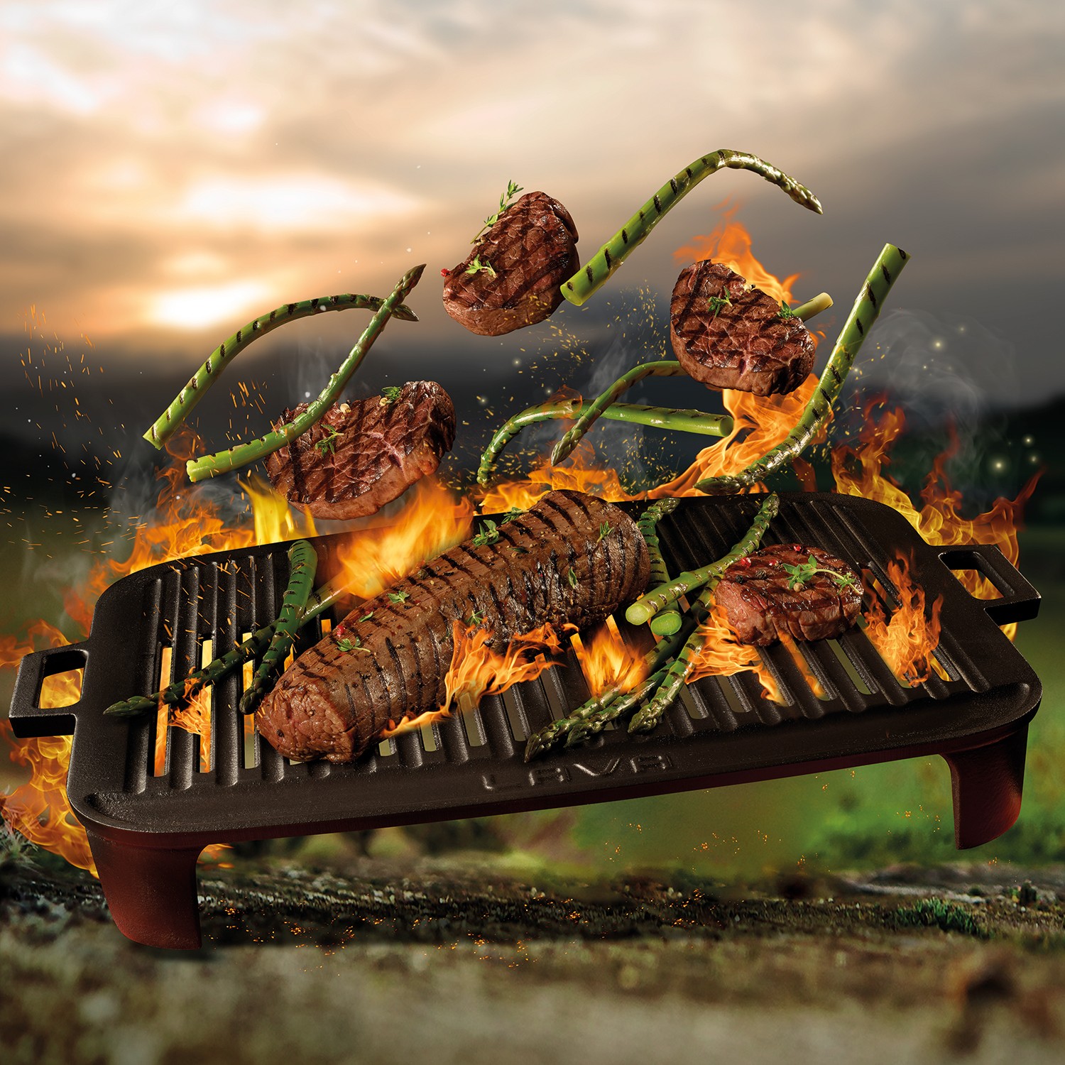LAVA döküm demir grill tavalarda pişen et asla tavaya yapışmaz bunun 2 sebebi vardır.