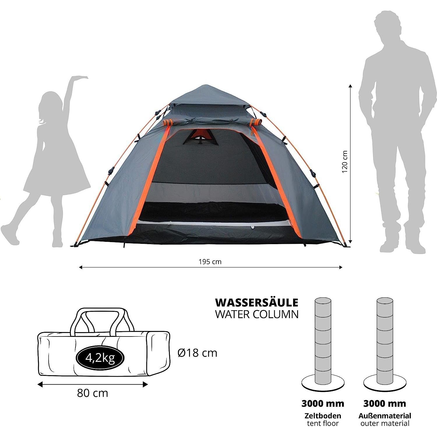 LUMALAND Outdoor 3 kişilik kamp çadırı: Kamp, yürüyüş, trekking, seyahat, plaj, bahçe veya festival çadırı olarak ideal.