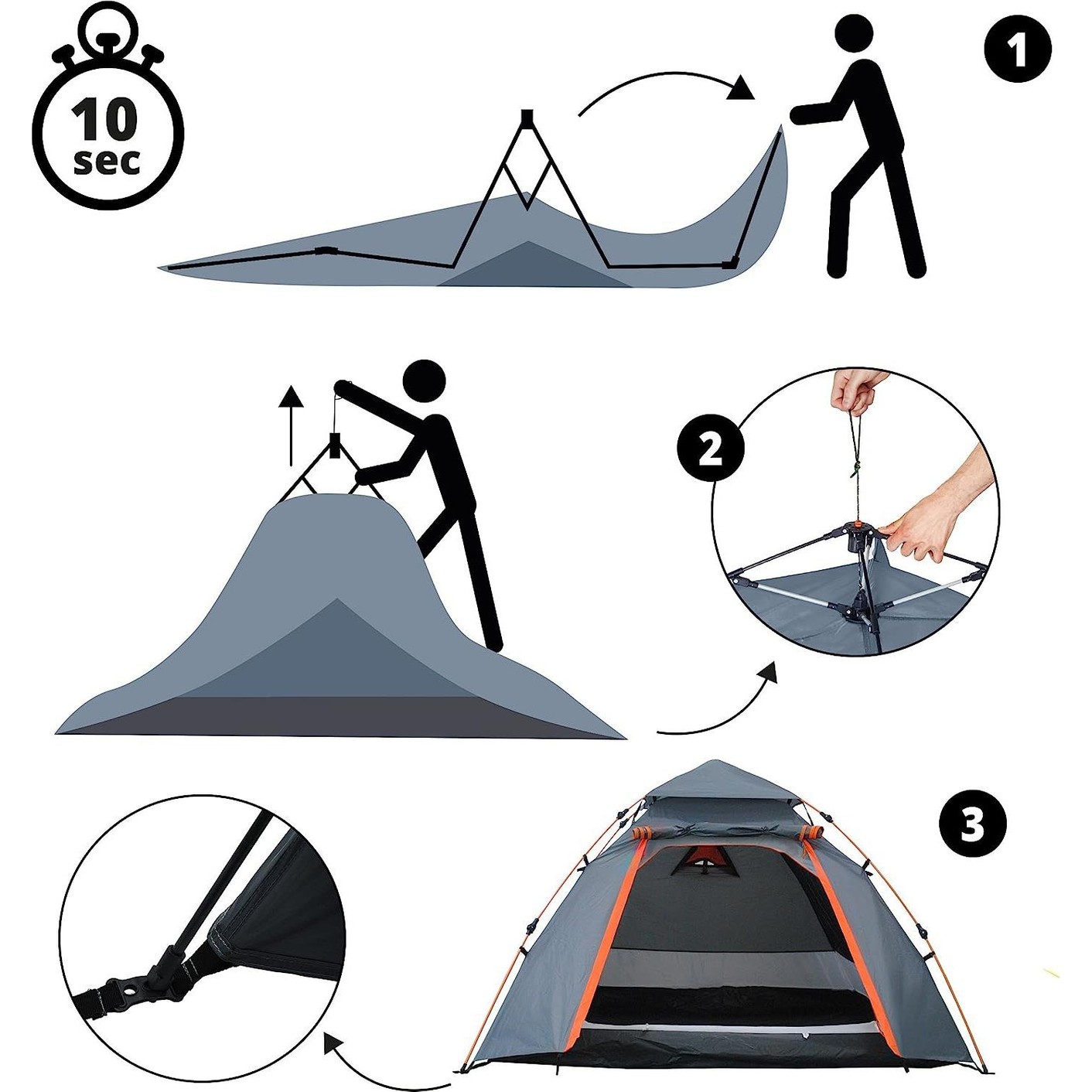 Yenilikçi katlama sistemi, ultra hızlı kurulum: Akıllı kurulum sistemi sayesinde çadır birkaç adımda hızlı ve kolay bir şekilde kurulabilir.