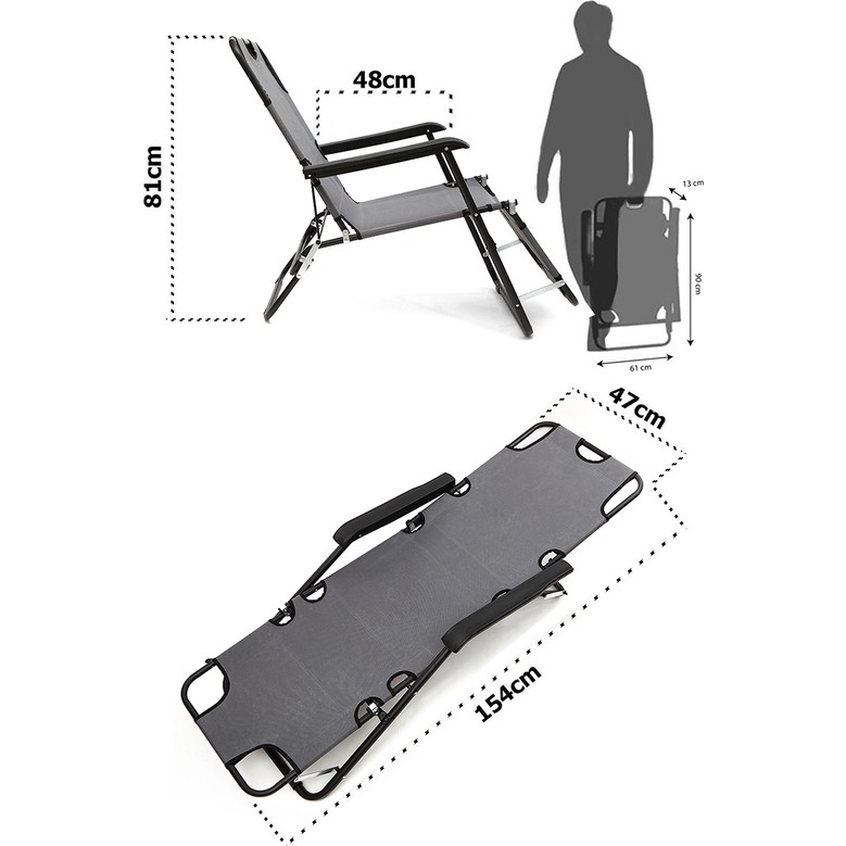 • Hem sandalye hem şezlong olarak kullanılabilir.