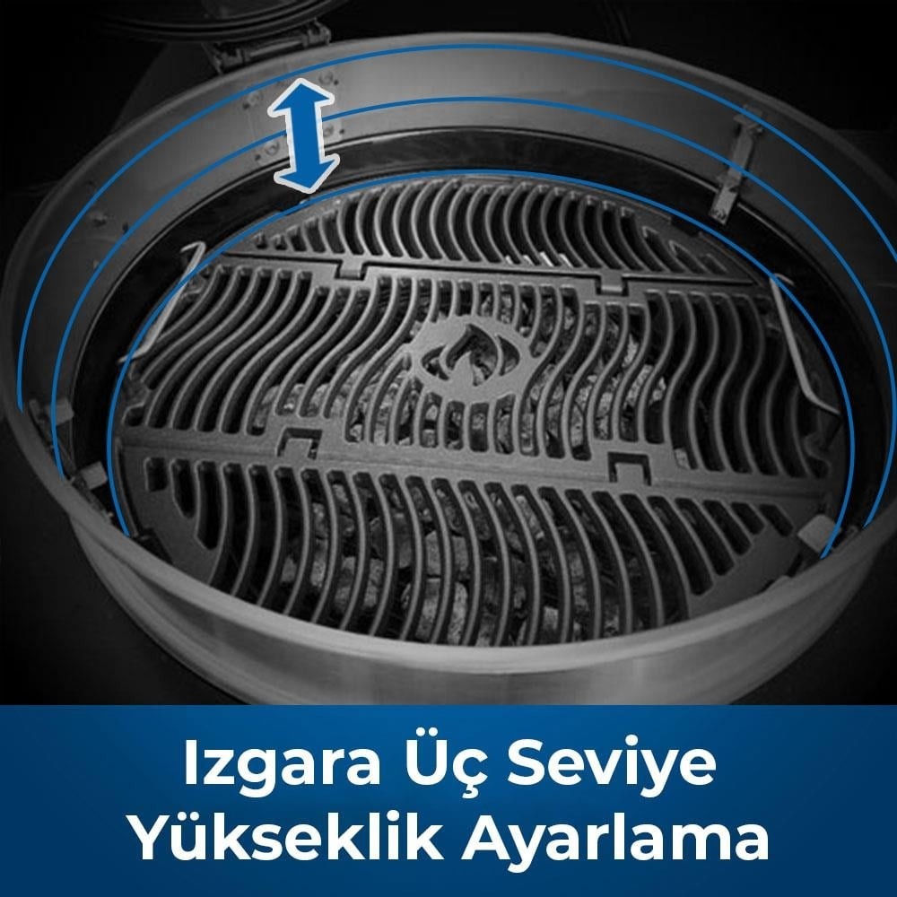 Napoleon pro kömürlü serisini rakiplerinden farklı kılan en önemli özellik! Döküm ızgaranızı üç seviye yükseklik ayarlayabilir, kömürünüz azalsa bile pişirmeye devam edebilirsiniz. |