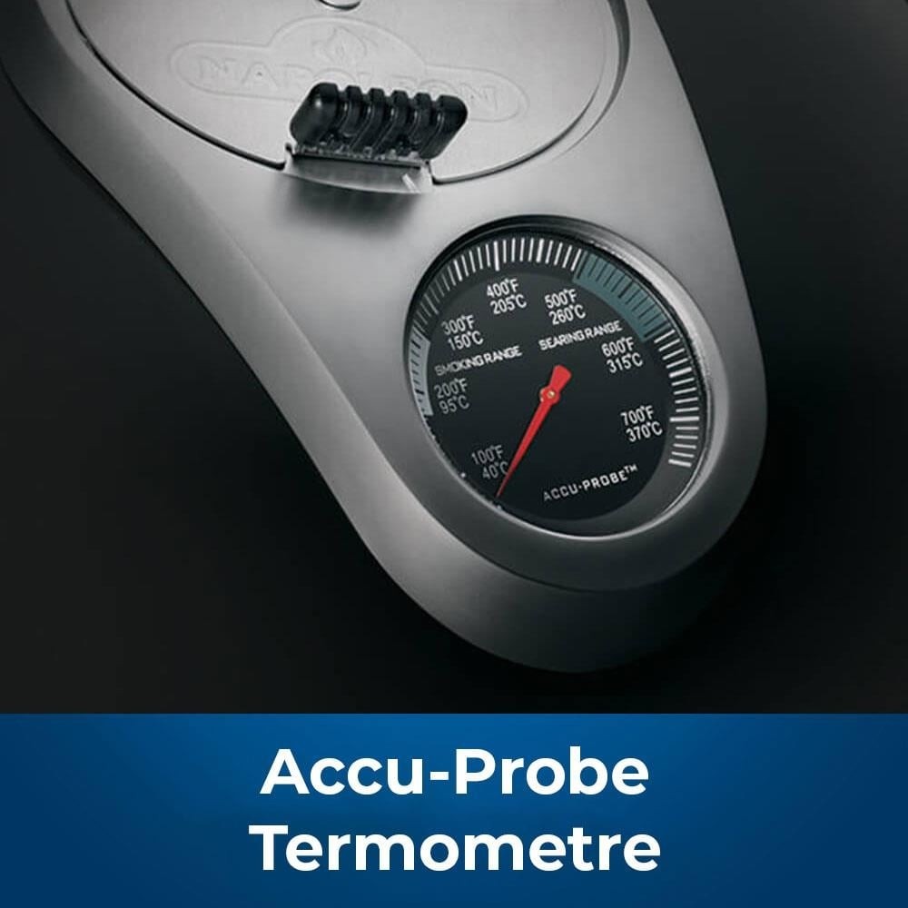 Üst kapağında bulunan Accu-Probe termometre sayesinde mangalın iç sıcaklığını anlık olarak hassas bir şekilde takip edin. |
