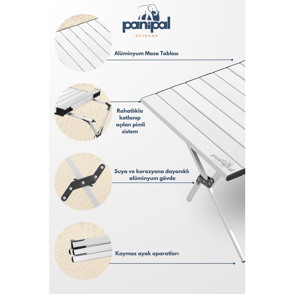 Panipal Outdoor Alüminyum, Katlanabilir Kamp ve Piknik Masası, Omuz Askılı Taşıma Çantasıyla L