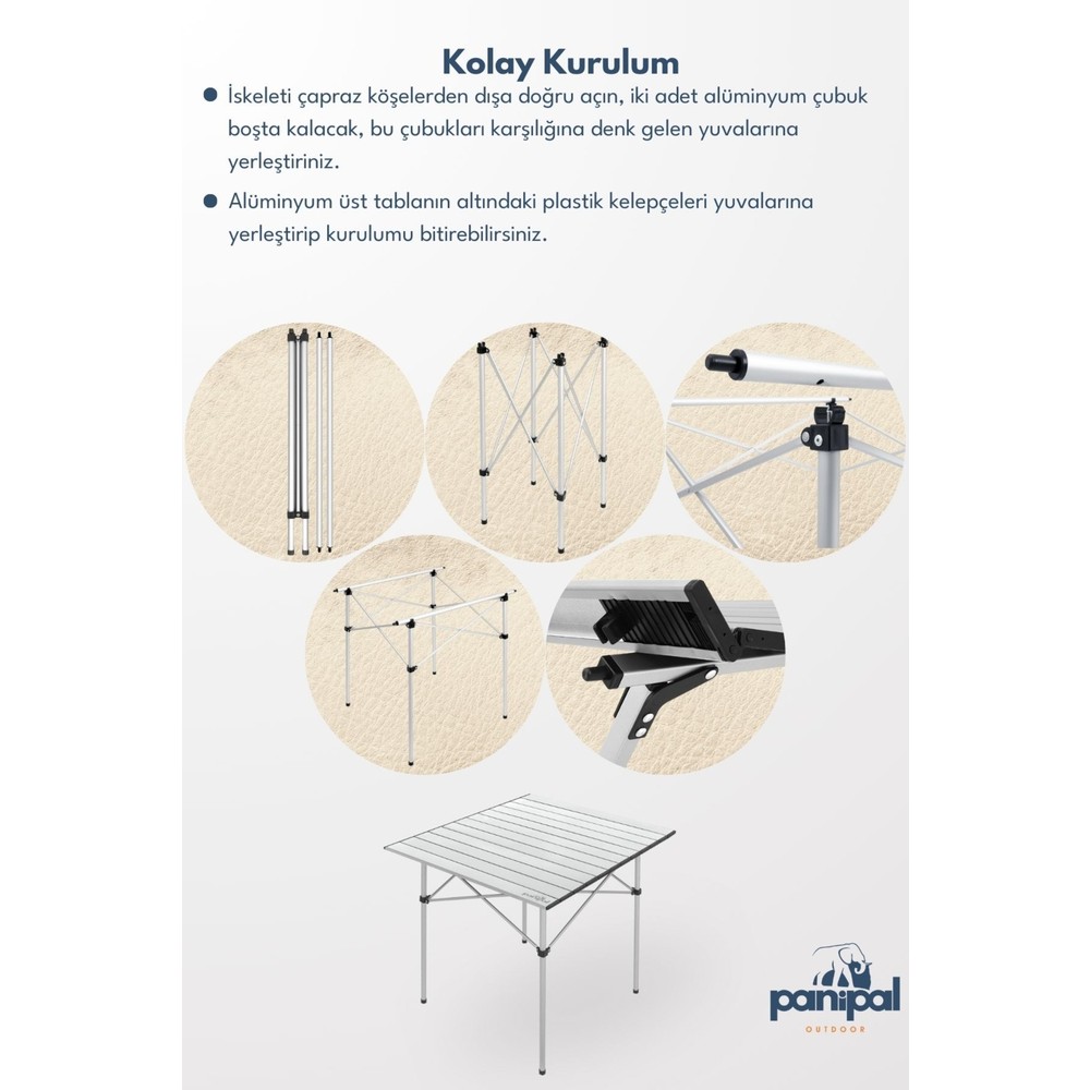 Panipal Outdoor Alüminyum, Katlanabilir Kamp ve Piknik Masası, Omuz Askılı Taşıma Çantasıyla Xl
