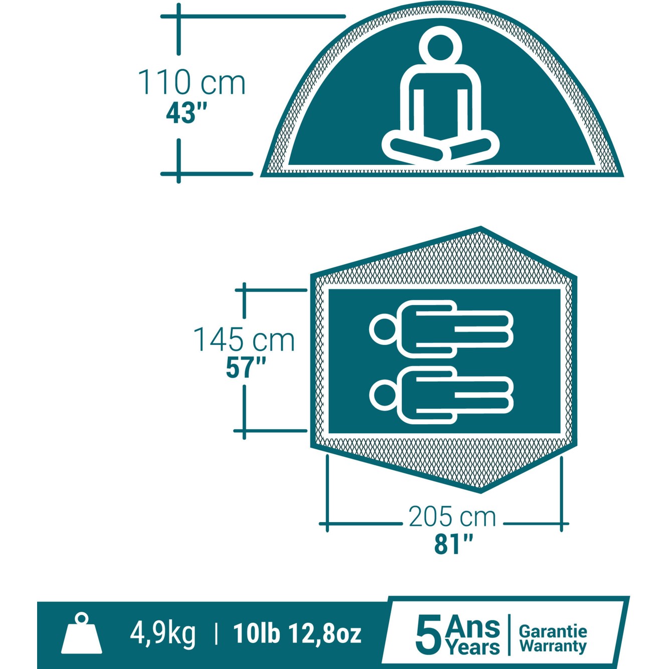 - Ürün tasarımı: Profesyonel becerilerimiz : Quechua olarak sizlere yüksek kaliteli çadırlar sunabilmek adına, çadırda geçirdiğiniz geceler gibi gerçek koşullarda, bağımsız test edenler ve saha testleriyle birlikte tamamladığımız her yeni ürünümüz için laboratuvar testleri gerçekleştiriyoruz. Su geçirmezlik: 200L/M²/SA altında 3 saat boyunca test edilmiştir (tropikal yağmura karşılık gelir). Rüzgara karşı dayanıklılık : 50km/SA – 6 şiddetinde. Buğu oluşumunu azaltma: Dış tenteli yapı.