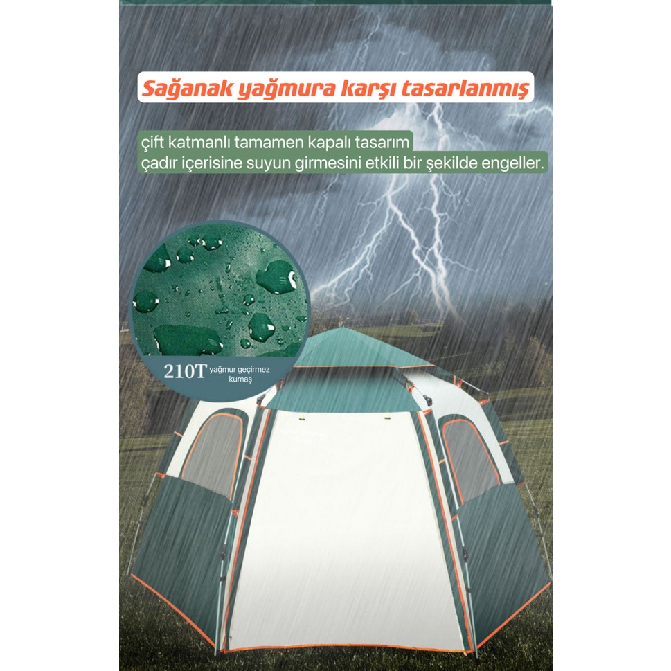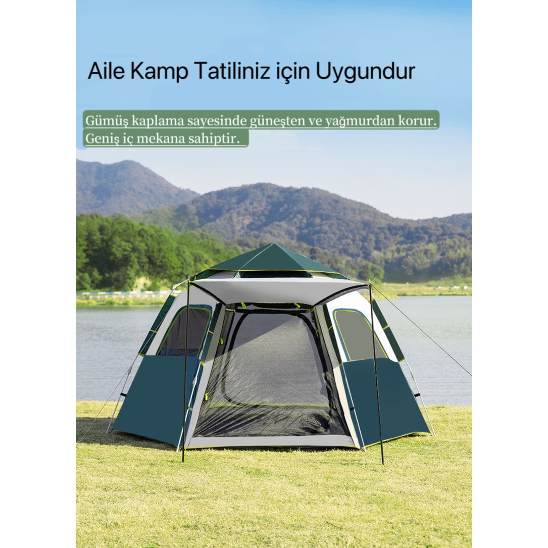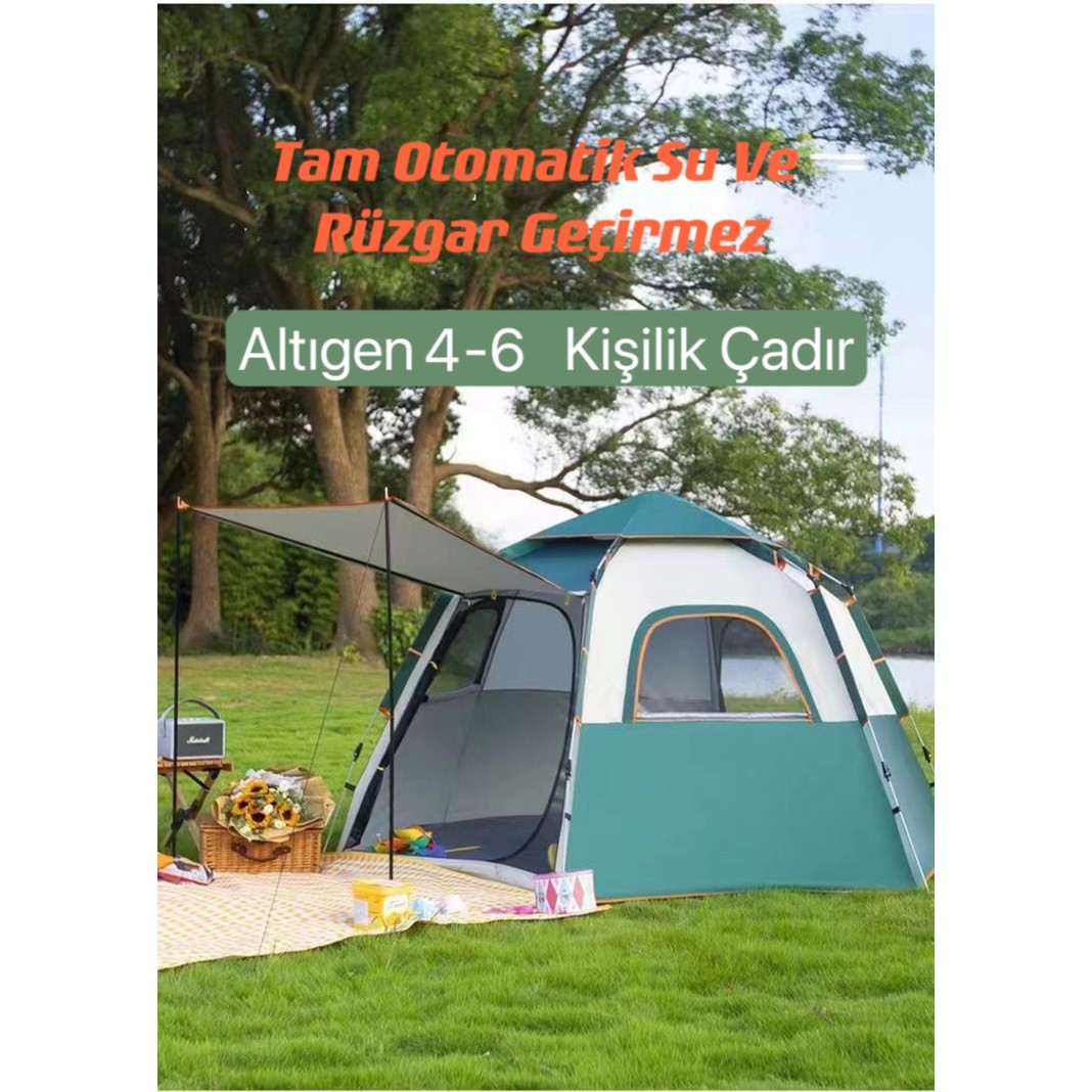 Shufa – Tam Otomatik Su ve Rüzgar Geçirmez Gölgelikli Altıgen Çadır Aile Çadırı 280*240*155 cm