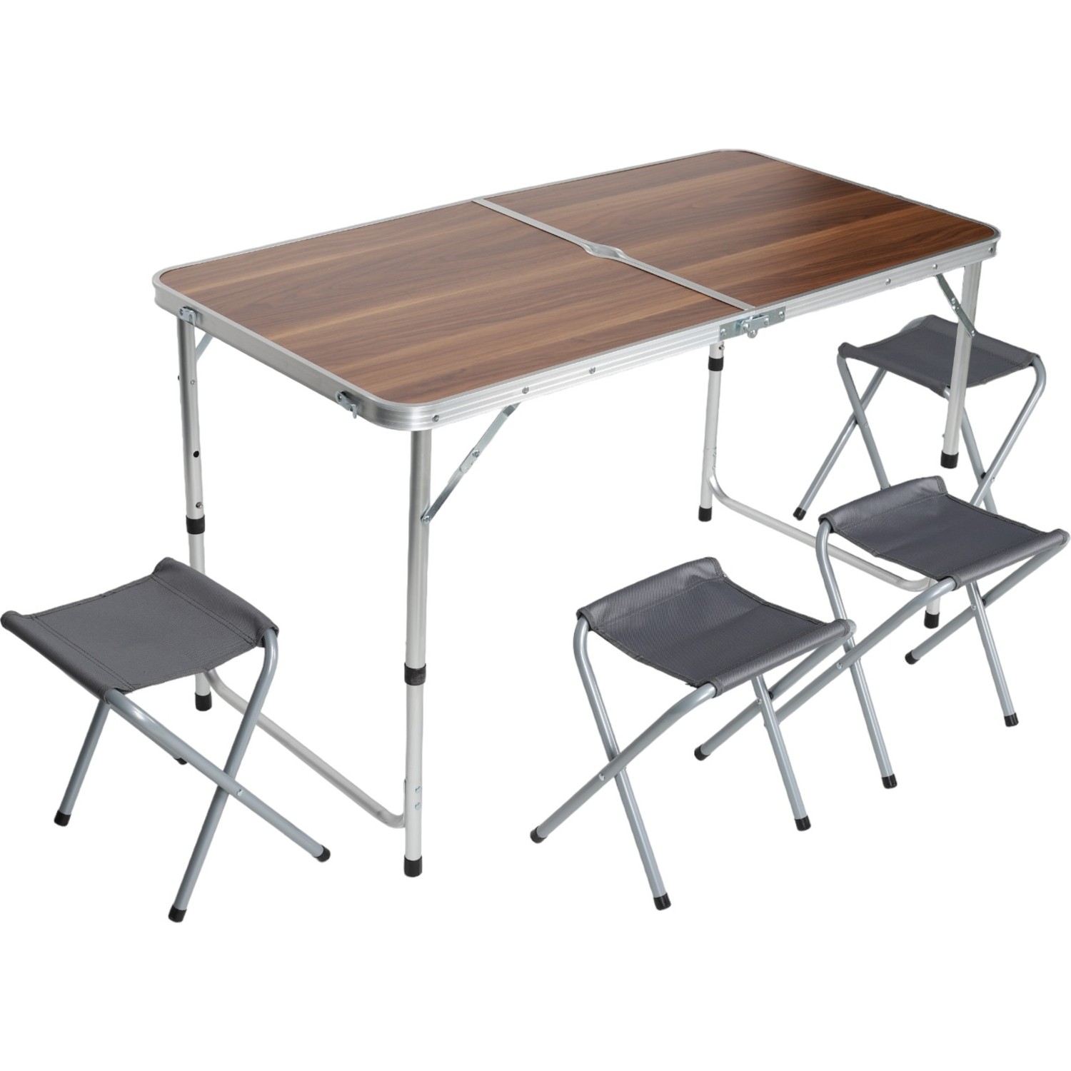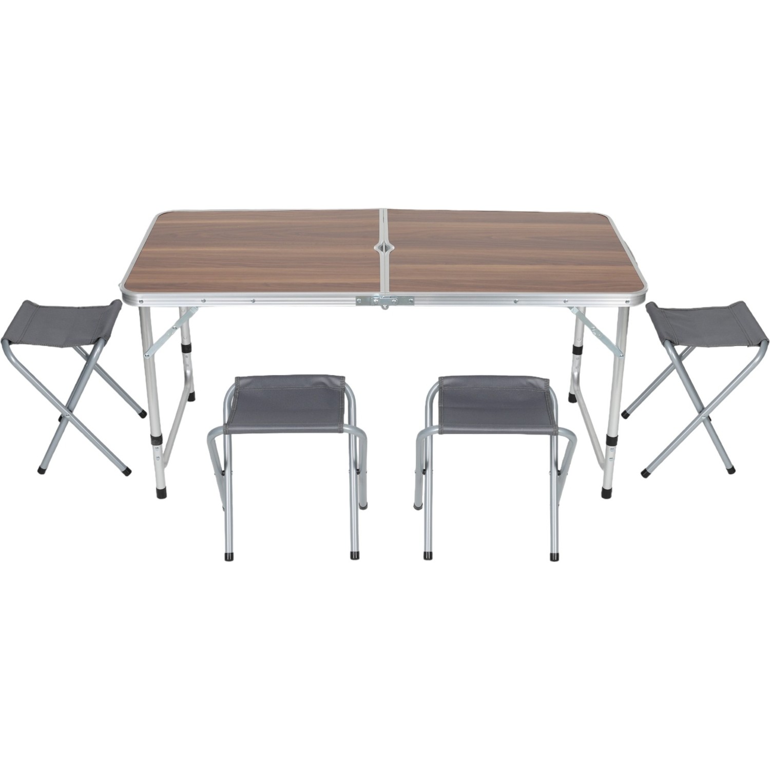 Uniqamping Çanta Tipi 4 Tabureli Katlanır Kamp Masa Seti – Ahşap Desen