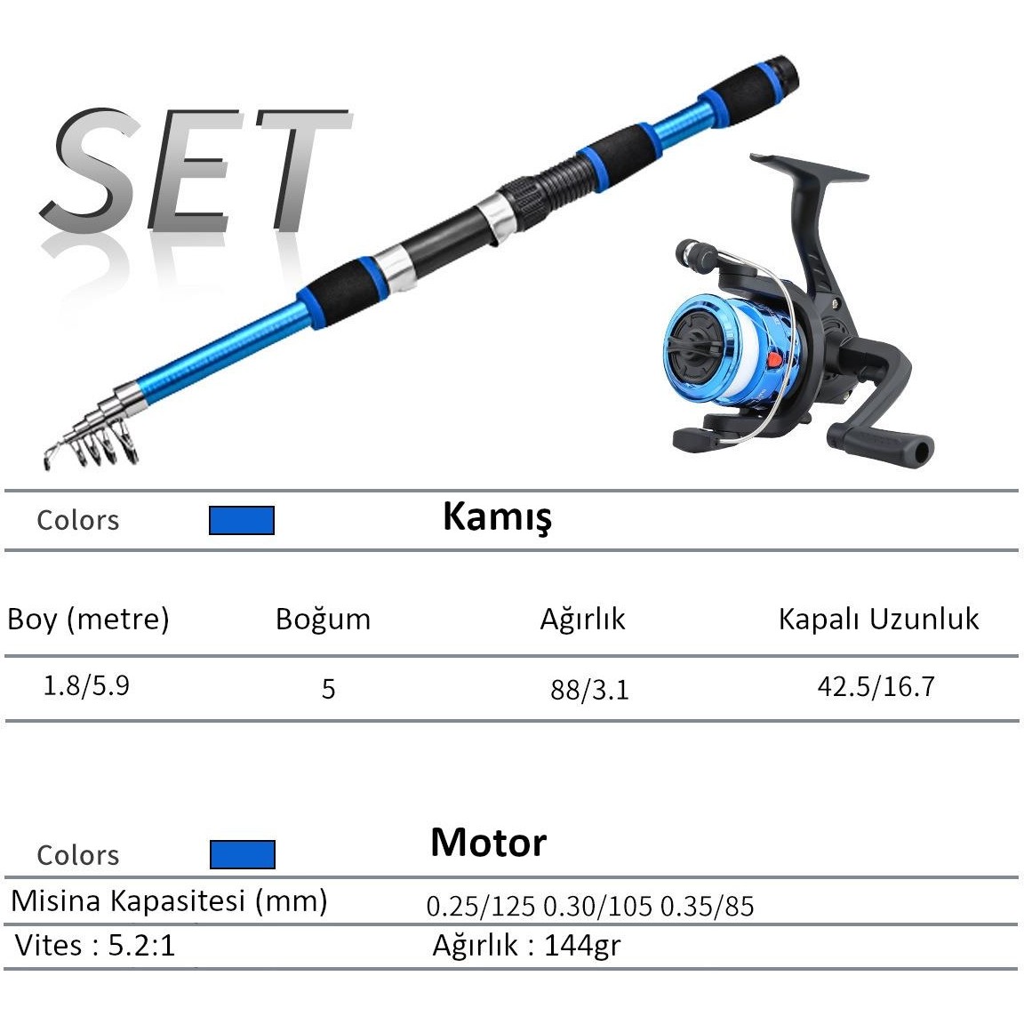 Valkyrie 1.70M Çantalı Tam Takım Balık Olta Seti Kamış Motor Yem Aksesuar Kutusu Dahil