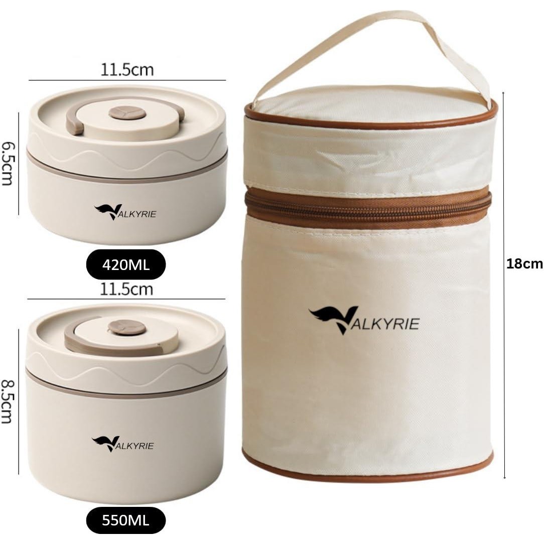 Valkyrie 2 Gözlü Paslanmaz Çelik Isı Yalıtımlı Yemek Kabı Seti Çantalı 304 Steel 420ML + 550ML
