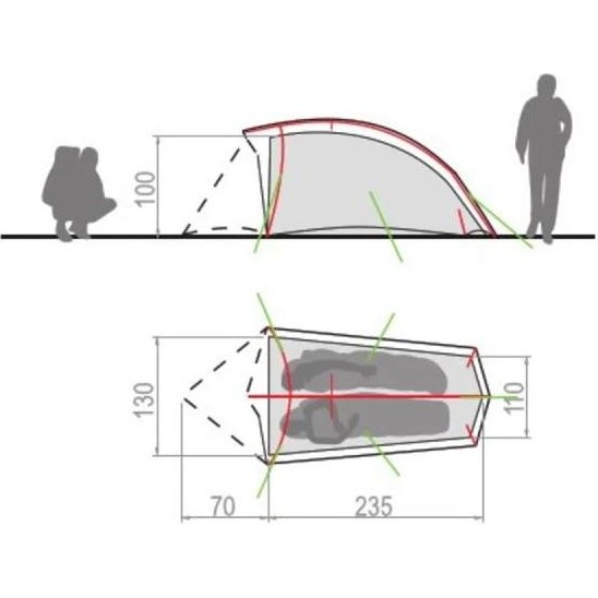 - Dış tente: %100 Poliamid; 20 D Ripstop her iki tarafı silikon kaplamalı, 3.000 mm su geçirmezlik